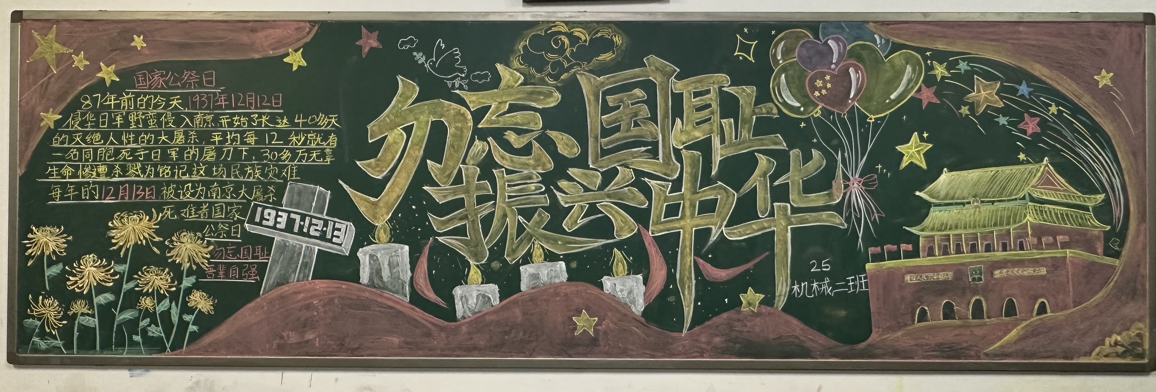 今年12月13日是我国第十二个南京大屠杀死难者国家公祭日。为引导员工重温民族苦难历史,缅怀遇难同胞,厚植爱国主义情怀,韦德1946体育官方入口组织开展了“铭记历史 振兴中华”主题黑板报绘制评比活动。