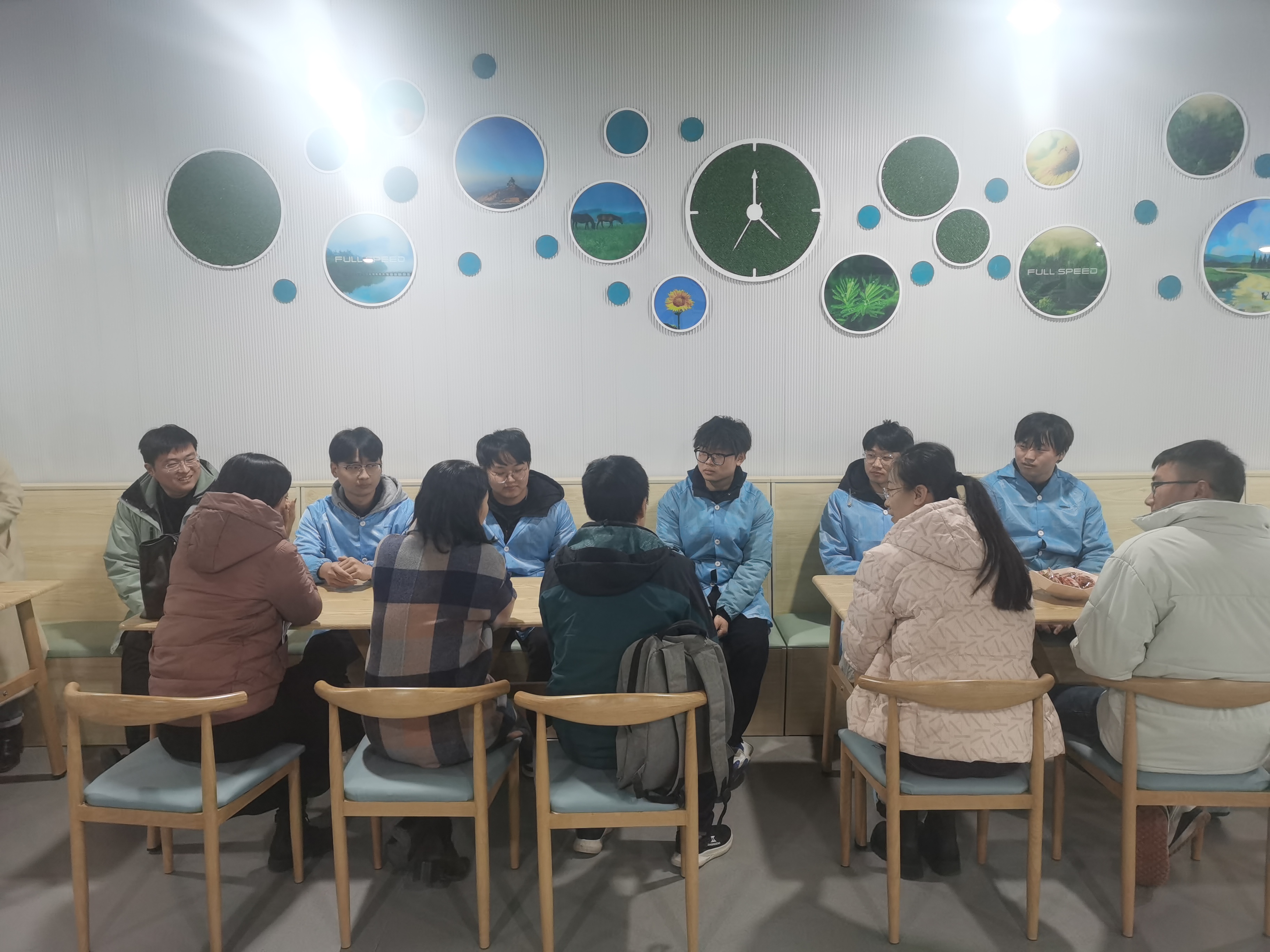 最后在员工休息区,几位同学和老师交流了岗位实习的心得、自身技能的提升以及未来工作的规划。