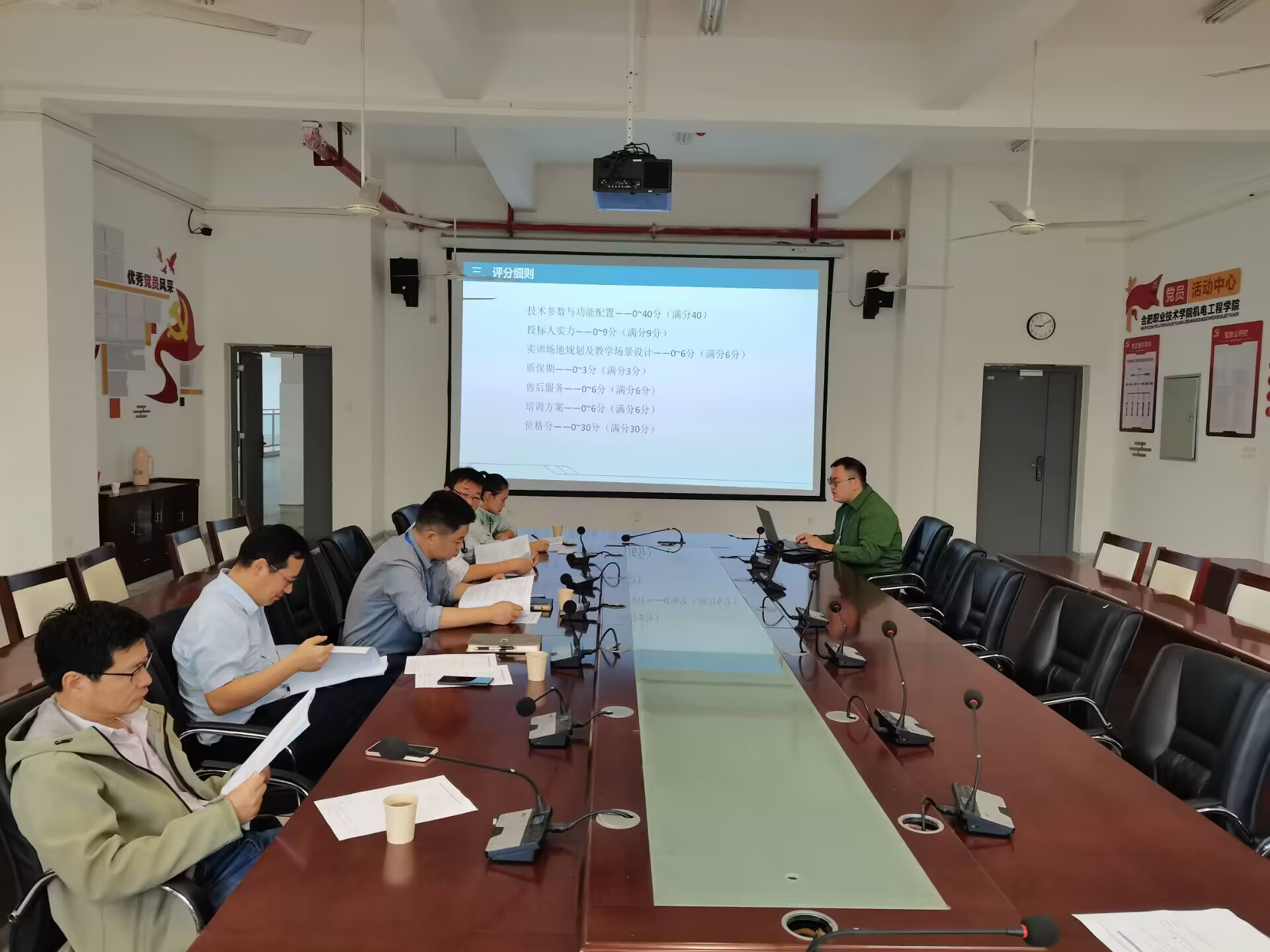 会议中,项目负责人首先介绍了单片机实训室建设的必要性;随后,详细汇报了采购计划和具体需求,包括拟采购的设备清单等内容;最后介绍了评分细则的制定、付款方式等情况