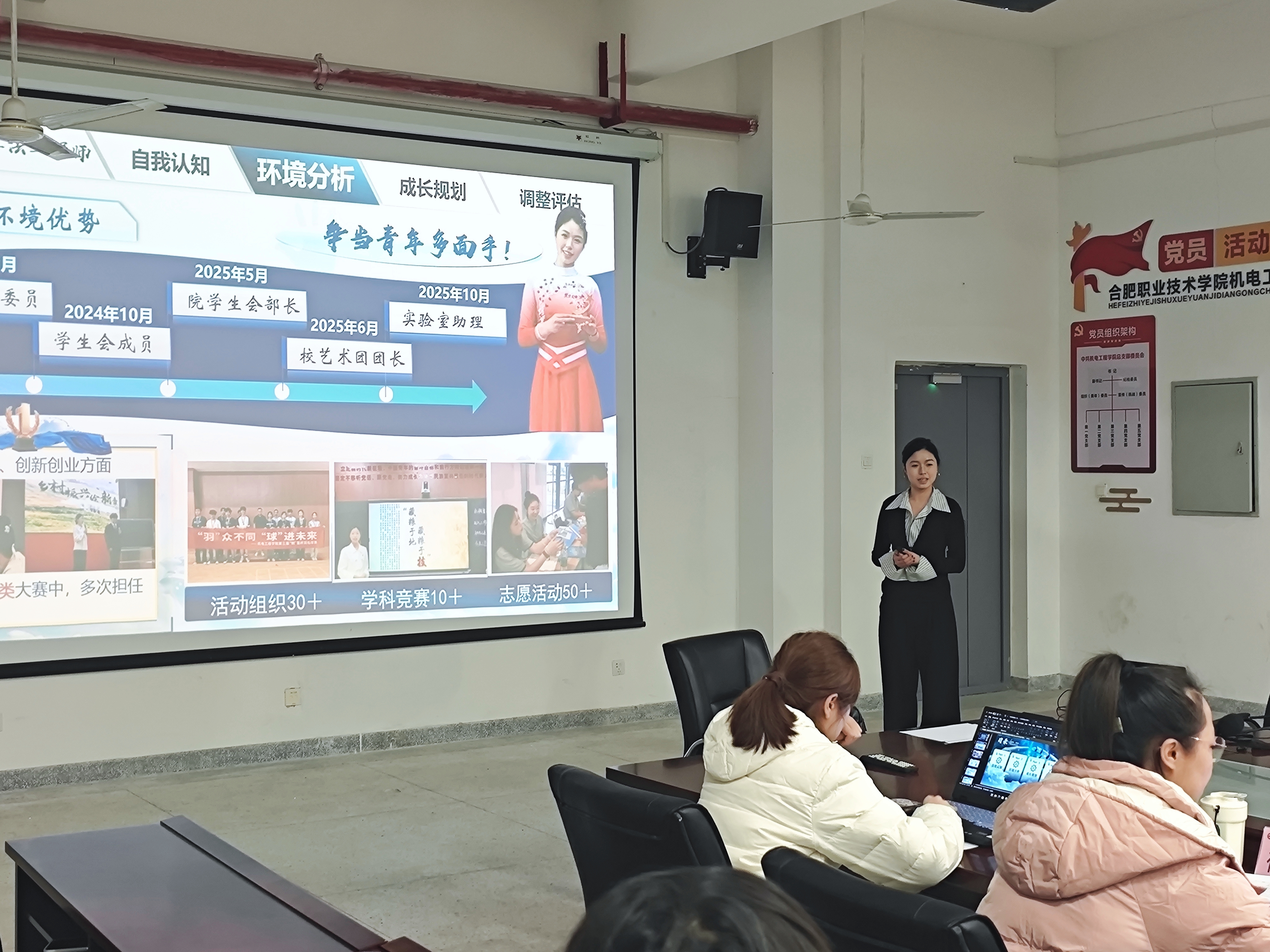 决赛现场,11名参赛选手依次登台,结合精心制作的PPT,从自我认知、职业分析、目标设定、实施计划、评估调整等方面,全面阐述个人职业生涯规划。选手们逻辑清晰、表达流畅,展现出对未来职业发展的深刻思考与明确规划,赢得评委与现场观众的阵阵掌声。评委团针对每位选手的表现进行精准打分,并从职业定位、规划可行性、PPT制作等方面给出专业点评与改进建议,助力选手完善规划、提升能力。