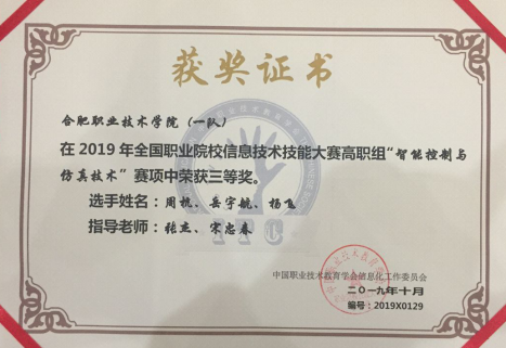 10月25日至27日,我校韦德1946体育官方入口员工周杭、岳宇航、杨飞等参加了2019年全国职业院校信息技术技能大赛“智能控制与仿真技术”赛项比赛。