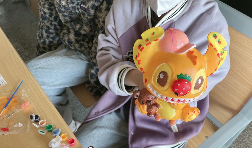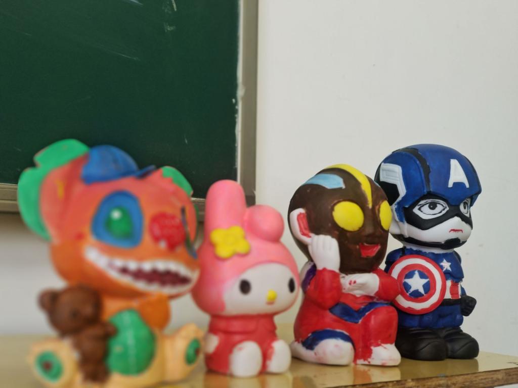 活动开展前夕,志愿者们精心布置场地,将不同种类的搪胶石膏模具、颜料等物品逐一发放到位。活动开始后同学们尽情发挥自己的想象力,用画笔蘸着不同色彩的颜料,在模具上进行涂鸦创作。如果没有钟意的颜色,就和同伴商讨,将几种颜料混合在一起,尝试独特的色彩搭配。欢声笑语中,一个个栩栩如生、绚丽多彩的作品逐渐呈现在大家眼前。