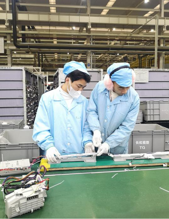 此次活动得到了合肥海尔滚筒洗衣机有限公司的大力支持,员工分两批进驻工厂生产线,他们带上手套,穿上防护服,亲身参与到生产之中,分散在不同的岗位,与海尔员工一起工作、交流。虽然劳动的过程是辛苦的,但是看着一台台洗衣机下线,即将走到千家万户,同学们的自豪感洋溢在脸上。