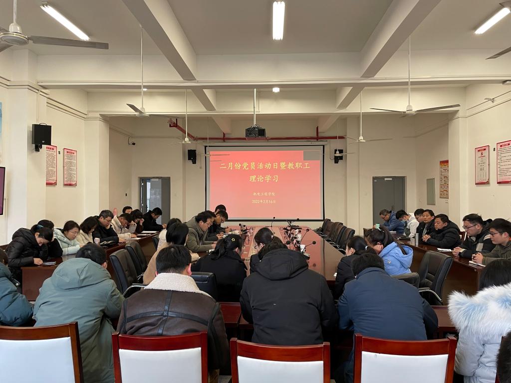 2月16日上午,韦德1946体育官方入口在机电楼二楼会议室召开二月份党员活动日暨教职工理论学习会议。公司党委委员、办公室主任王海及全体教师职工参加会议,会议由该公司党总支书记王克勇主持。