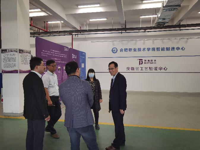 5月11日上午,池州职业技术公司机电与汽车系副主任吴志光和教务科科长章毅一行来到韦德1946体育官方入口进行考察调研。