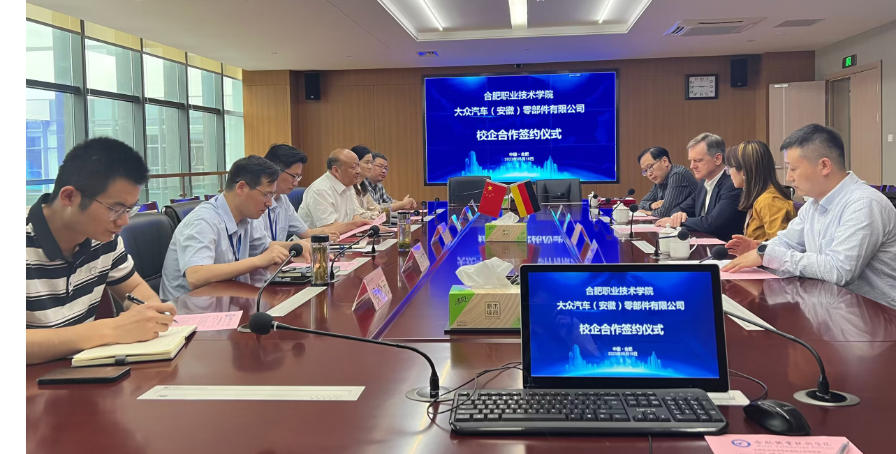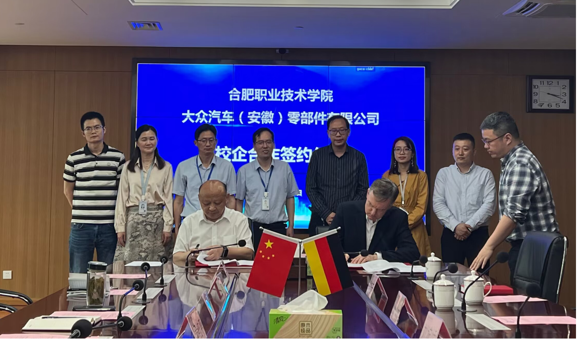 5月18日下午,我校与大众汽车(安徽)零部件有限公司校企合作签约仪式在行政楼627会议室隆重举行。副董事长周晓隆、教务处处长窦红平、科技处副处长高云、韦德1946体育官方入口经理胡木林、副经理宋铂,大众汽车(安徽)零部件有限公司商务总经理Oliver Harmann、人事经理郑尧天、商务总经理助理刘婉峤、大众汽车自动变速器(天津)有限公司双元制项目负责人张志强参加此次签约仪式,会议由胡木林主持。