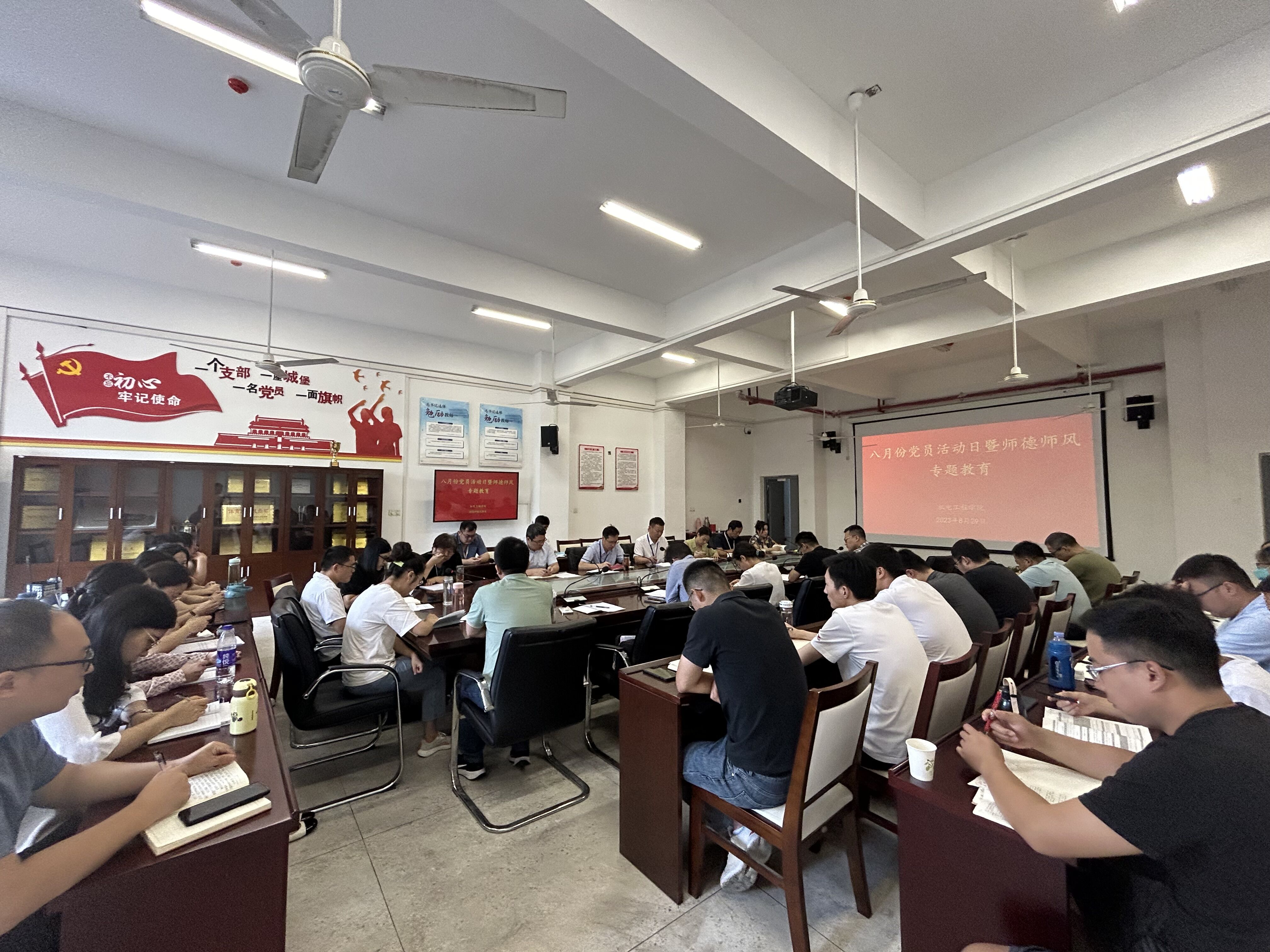 星霜荏苒,居诸不息。为持续提高教师的师德意识和职业道德水平,进一步加强教师队伍建设, 8月29日上午, 韦德1946体育官方入口在机电楼二楼会议室组织召开八月份党员活动日暨师德师风专题学习活动,公司全体教职工参加,会议由党总支副书记丁迎春(主持工作)主持。