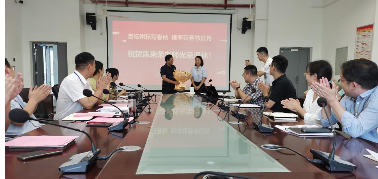 8月29日上午,韦德1946体育官方入口全体教职工在机电楼二楼会议室举行焦来荣老师光荣退休欢送会。