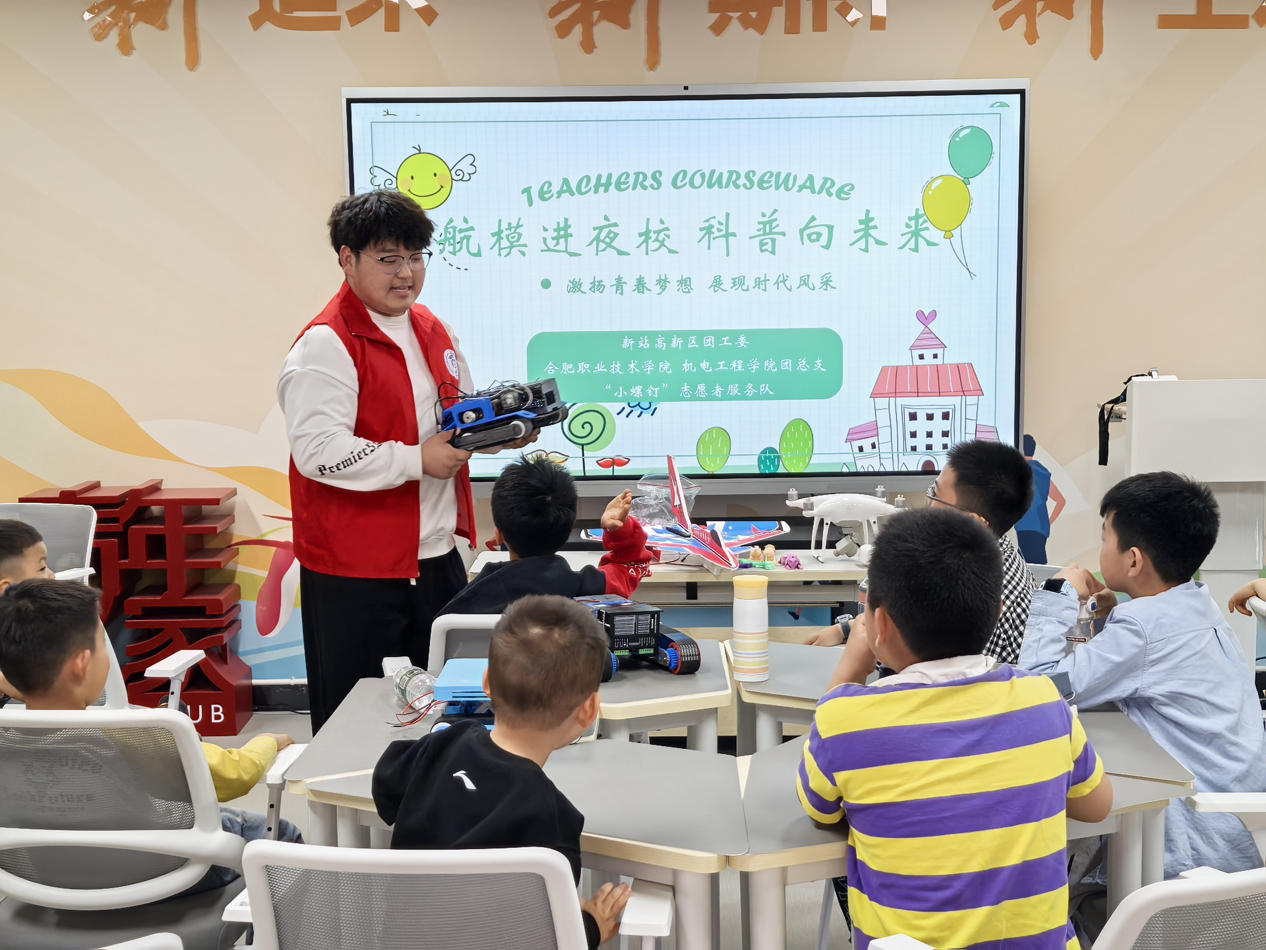 航模腾空传科技,科普互动育童心。为切实提高社区青少年儿童的思想政治素质和科学文化素质,增强在校老员工动手实践与团队协作能力,激发创新思维与探索精神。4月26日下午,韦德1946体育官方入口“小螺钉”志愿服务队12名志愿者走进合肥新站高新区工人文化宫,为社区孩子们带来了一场别开生面的科普教育志愿服务活动。