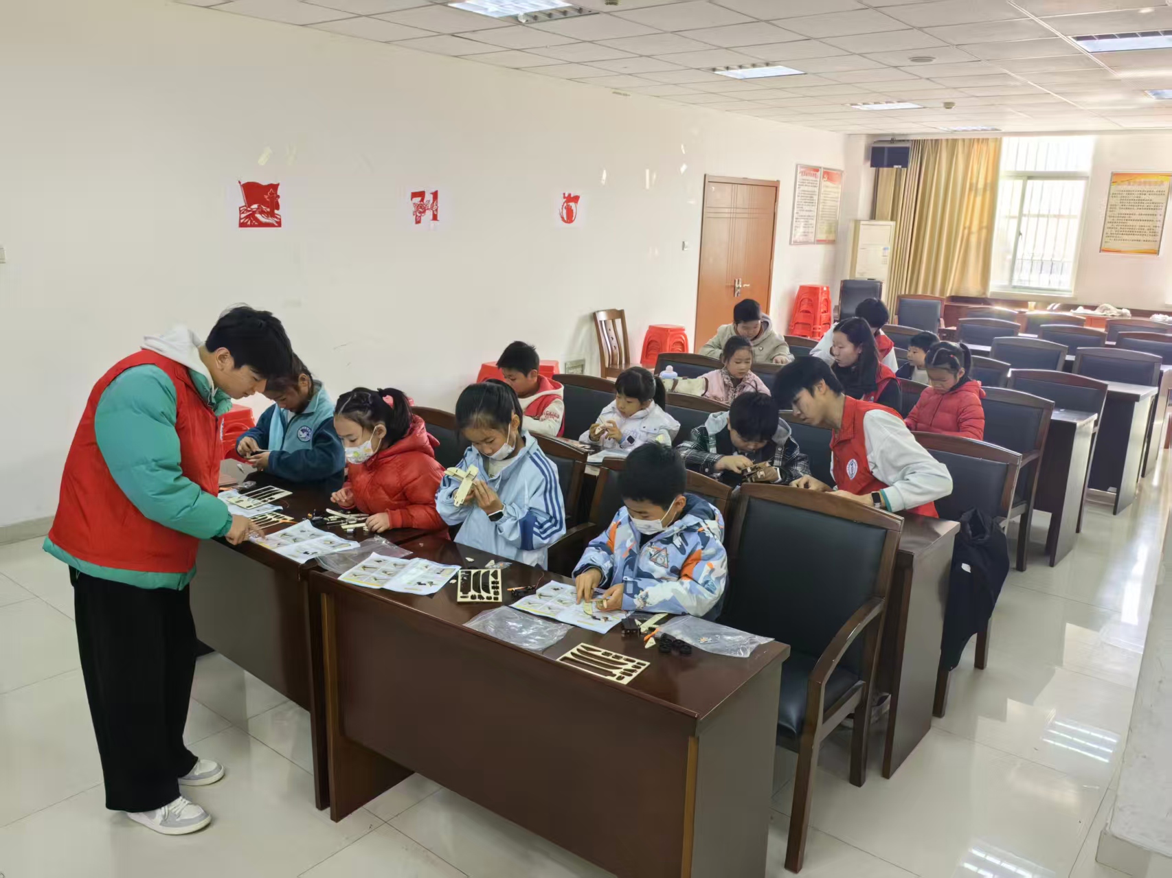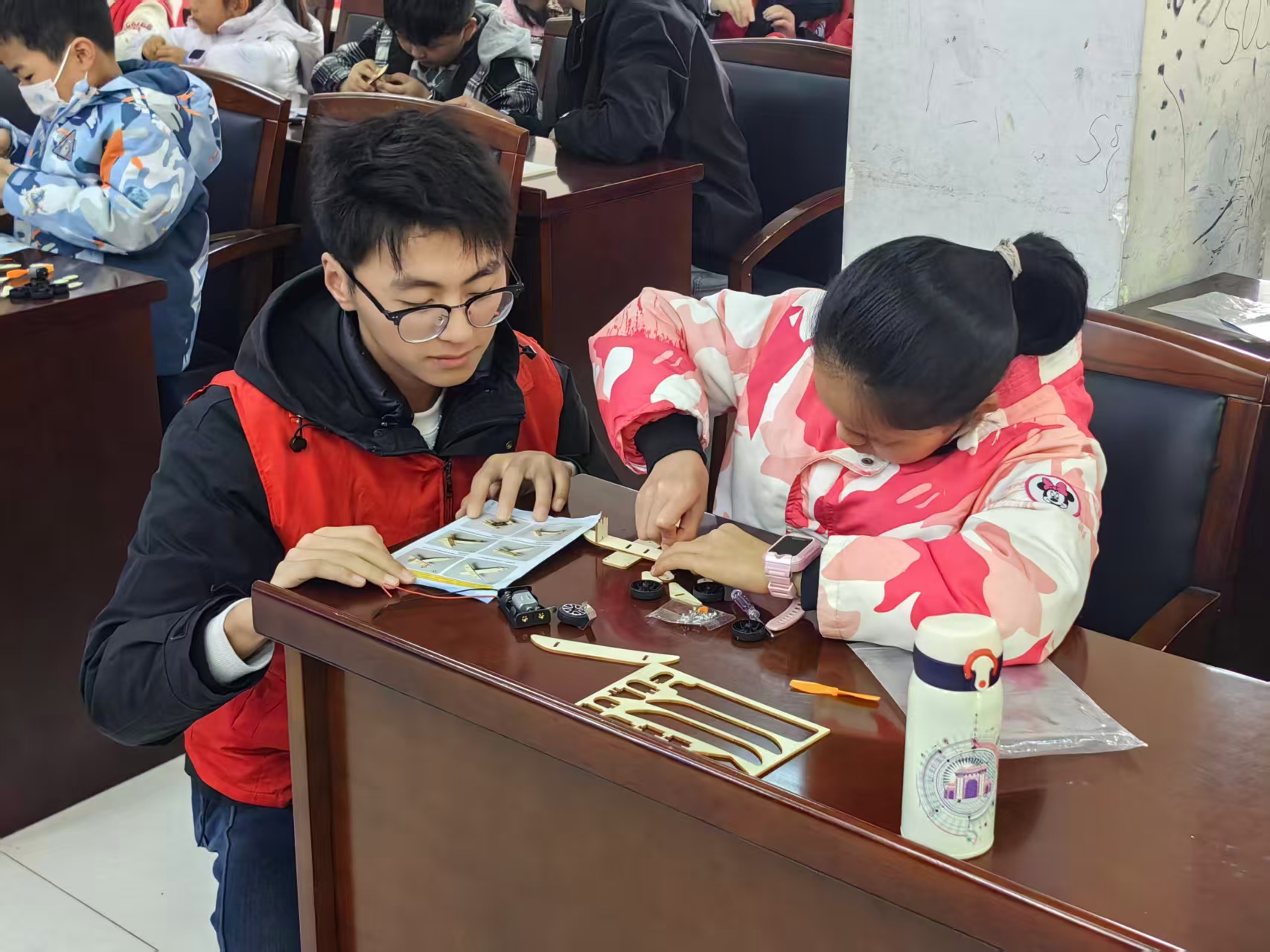 在模型制作环节,志愿者们分组指导孩子们动手组装飞机模型。从机翼的粘贴到尾翼的调整,每一个步骤都凝聚着耐心讲解与亲手示范。孩子们神情专注,即便在拼接中遇到困难,也毫不气馁,一次次尝试中展现出坚持与勇气。当成型的飞机模型终于在手中“诞生”,孩子们的脸上无不洋溢着自豪与喜悦。