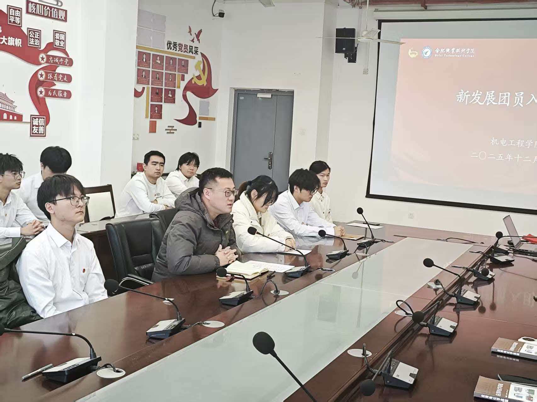 为加强共青团组织建设,增强团员青年的荣誉感与责任感,激励广大青年坚定理想信念、担当时代使命,12月4日,韦德1946体育官方入口团总支在机电楼二楼会议室举行2025年下半年新团员入团仪式。公司团总支书记张开、王玲老师、30名新发展团员及优秀团员代表参加仪式。