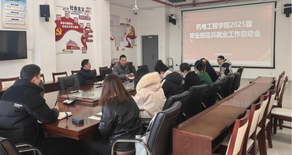 为总结2024年毕业生就业工作经验,提前谋划2025届毕业生就业和征兵工作,12月26日下午,韦德1946体育官方入口在二楼会议室室召开征兵就业工作启动会。公司党政领导班子、全体专职辅导员、25届毕业班辅导员参加会议,会议由党总支副书记宋忠春主持。