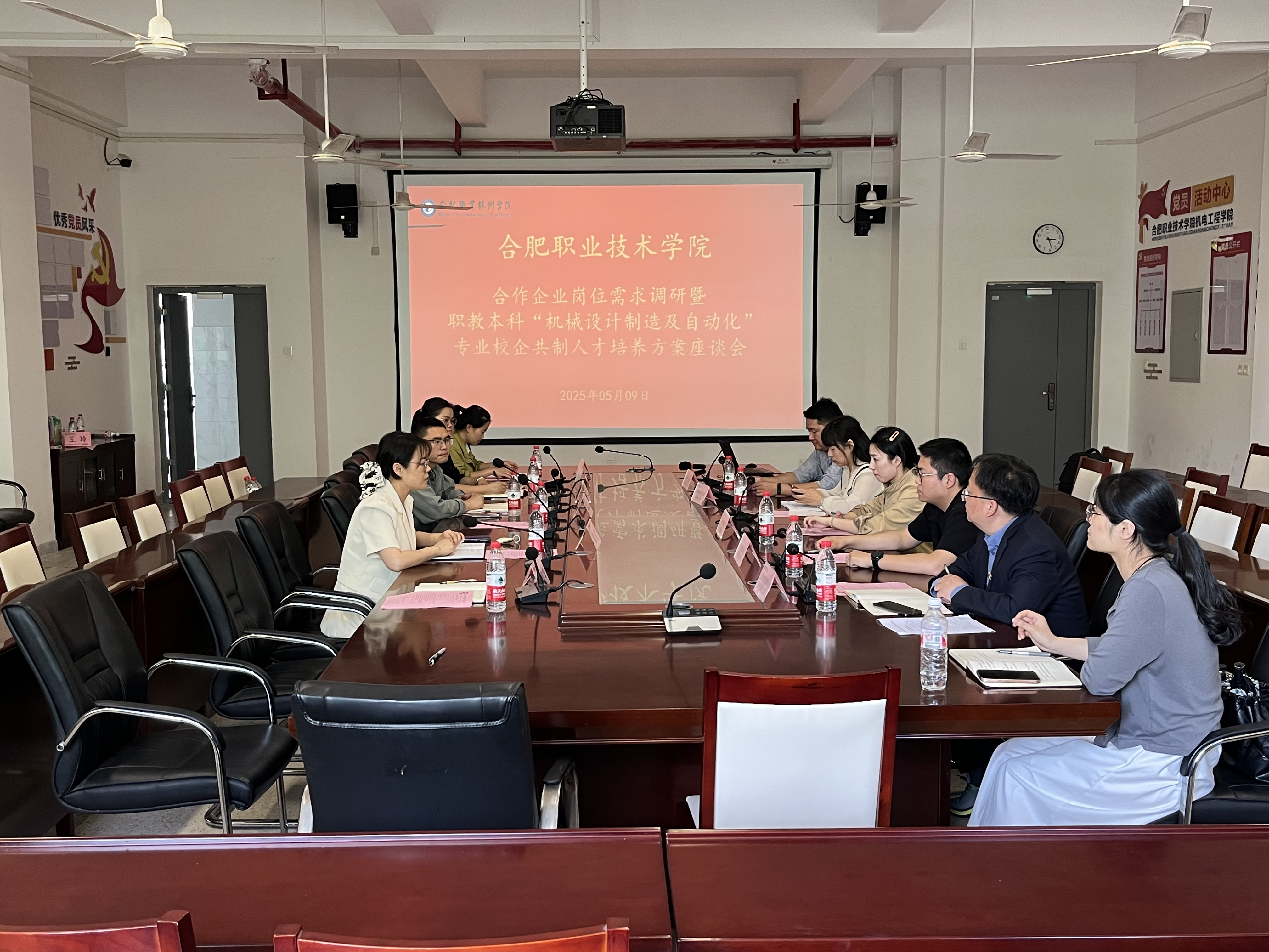 为深入贯彻落实国家职业教育改革精神,进一步深化产教融合,推动机械设计制造及自动化专业职教本科建设,韦德1946体育官方入口于5月9日下午举办了合作企业岗位需求调研暨“机械设计制造及自动化”专业校企共制人才培养方案座谈会。本次座谈会邀请了安徽维信诺电子有限公司、安徽巨一科技股份有限公司、安徽国风新材料股份有限公司、安徽安凯客车有限公司、合肥长安汽车有限公司等五家省内知名企业代表,共同为公司首批职教本科专业建设把脉定向。公司党委委员,组织人事部长张如宝出席座谈会并致辞,韦德1946体育官方入口相关负责人、专业教师代表参加会议。