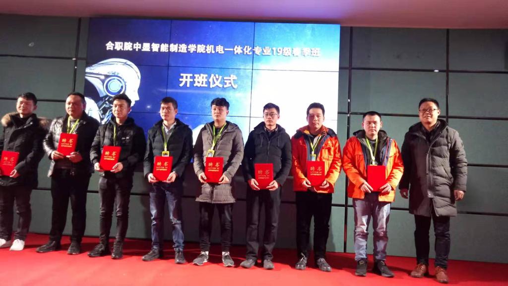 为贯彻执行《国家职业教育改革实施方案》提高技能型人才培养质量和针对性,实现专业设置与产业需求对接,课程内容与职业标准对接,教学过程与生产过程对接,毕业证书与职业资格证书对接,职业教育与终身学习对接,经过几个月的紧张筹备,2019年2月27日下午,合职院中显智能制造公司19级春季班开班啦!开班典礼在中显公司二楼电教室举行,合职院韦德1946体育官方入口共有16名员工报名参加电一体化中显班,现已进入顶岗实习阶段。