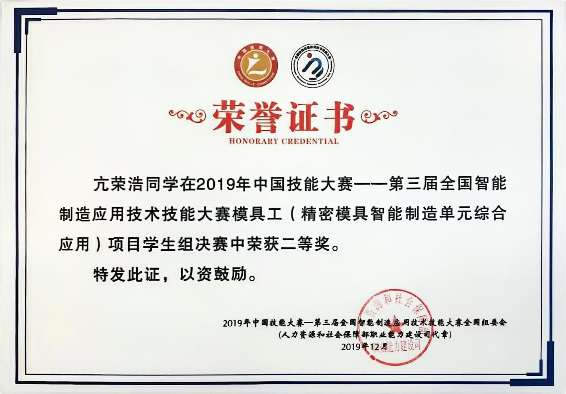 部分技能大赛获奖证书