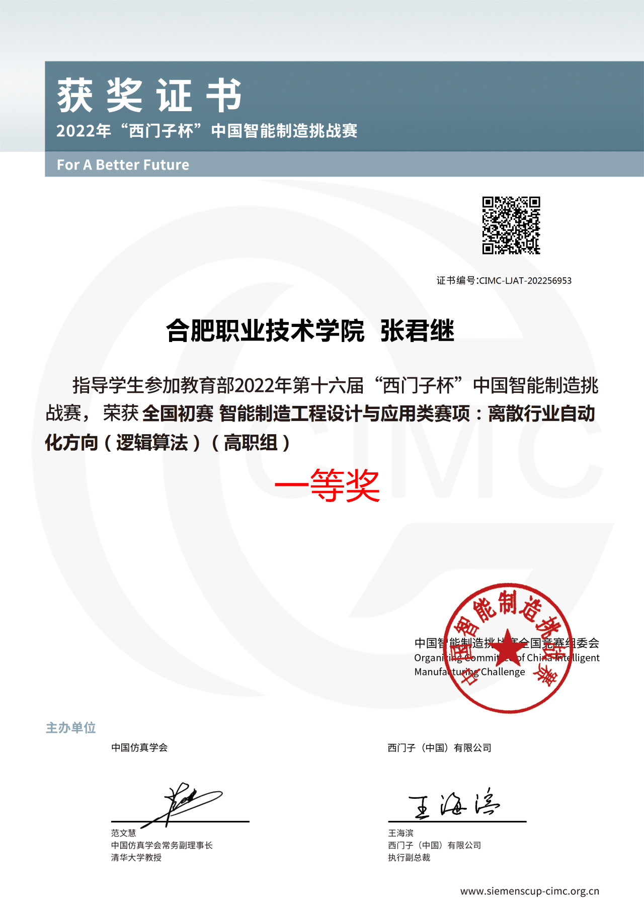 【专业建设成果】最近五年,机电一体化技术专业已建成省级精品课程1门,省级教科研项目7项。专业员工在中国智能制造挑战赛中荣获国赛二等奖一项,安徽省职业技能大赛等省级赛事中获得一等奖2项,二等奖2项,三等奖3项。