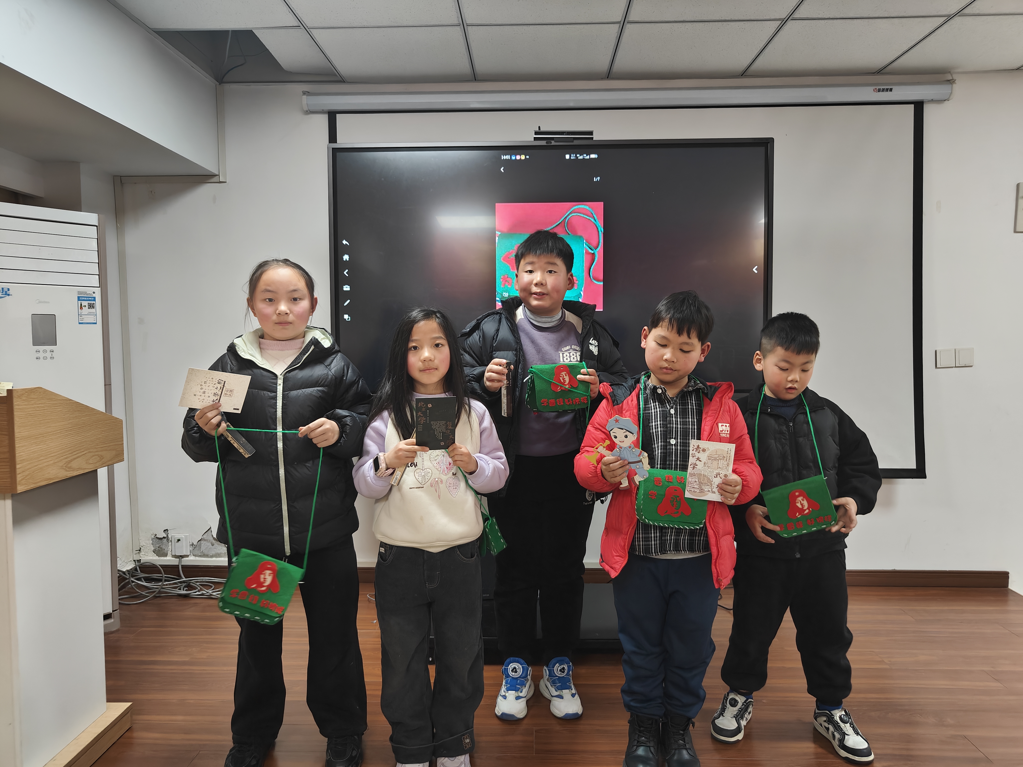 活动开始,志愿者们首先为孩子们播放了动画短片《雷锋的故事》。影片通过真实影像与动画结合的形式,再现了雷锋同志雨中护送老人、省吃俭用支援灾区等感人事迹。观影结束后,志愿者围绕影片内容展开互动问答:“雷锋叔叔为什么总戴着补丁帽子?”“雷锋叔叔最喜欢帮助哪些人?”孩子们争先恐后地举起小手,稚嫩的回答中充满真挚:“雷锋叔叔的帽子补了又补,是因为他要省下钱帮助更需要的人!”答对问题的小朋友,接过奖品笔记本和彩笔,脸上绽放出灿烂的笑容。