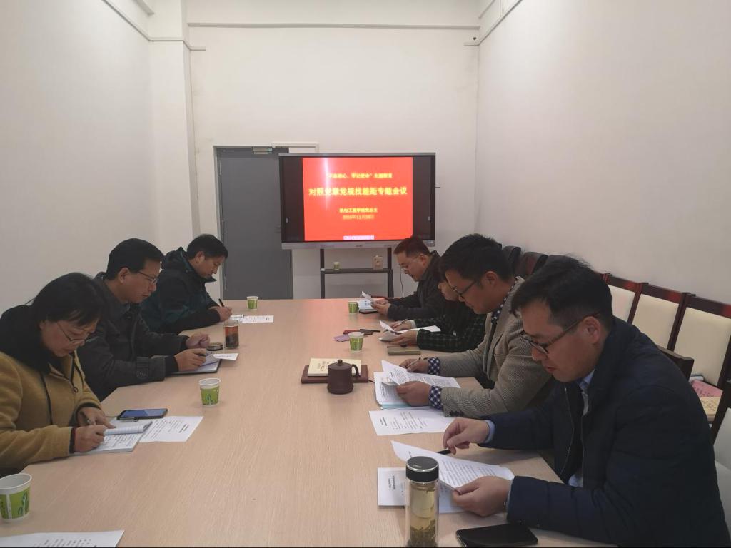 11月26日上午,机电工程公司党总支在机电楼二楼会议室召开对照党章党规找差距专题会议。公司总支委员参加了会议,公司“不忘初心、牢记使命”主题教育第七指导组组长王海、副组长丁怡琴、成员马恒彬、陈辛琦到会指导。会议由该公司党总支副书记(主持工作)王克勇主持。