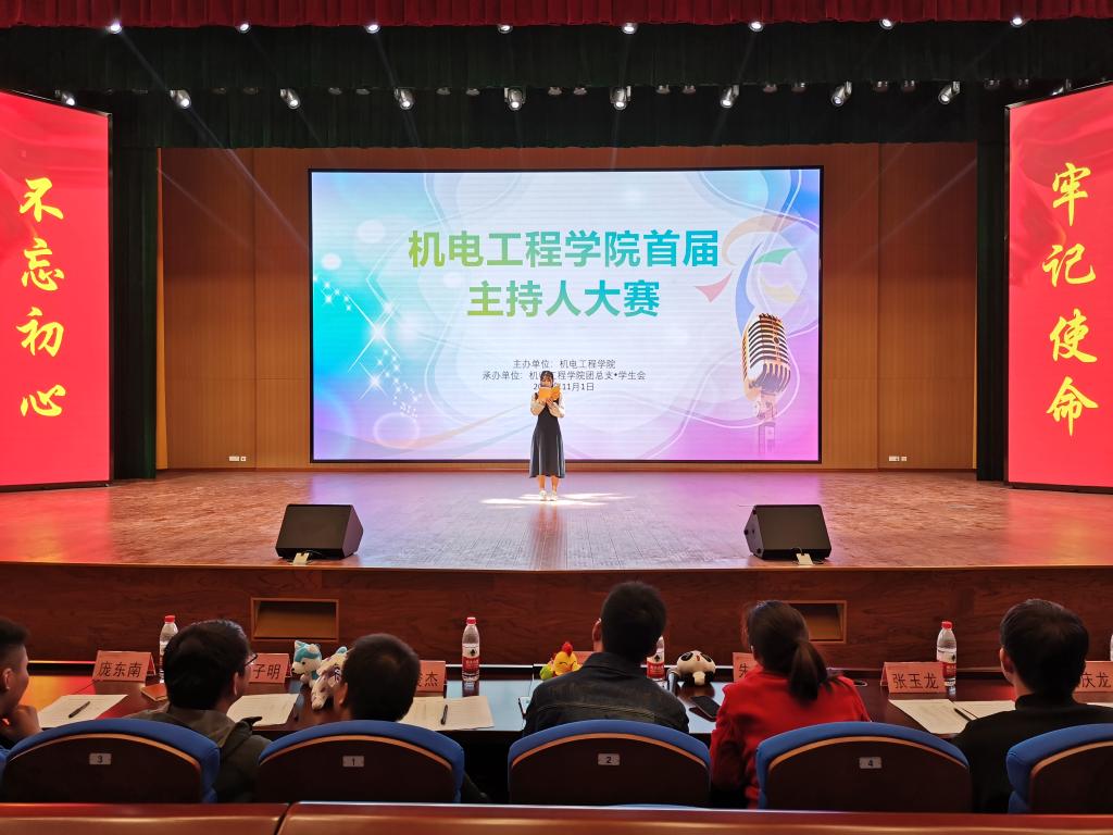 此次大赛分为初赛和决赛两个赛制,初赛在10月份通过自我介绍、才艺展示、模拟主持等环节进行PK,最终选拔出了12位选手进入决赛。决赛分为模拟播音和模拟主持两个环节进行,模拟播音要求选手们要做到感情控制,模拟主持要求每位选手根据自己的特点自行编辑主持稿。在这个舞台上每位选手尽情展示自己的风采,有的慷慨激昂,有的温婉动听,有的激情四射。经过激烈地角逐,19机电6班的王铎同学成为“金声”者。