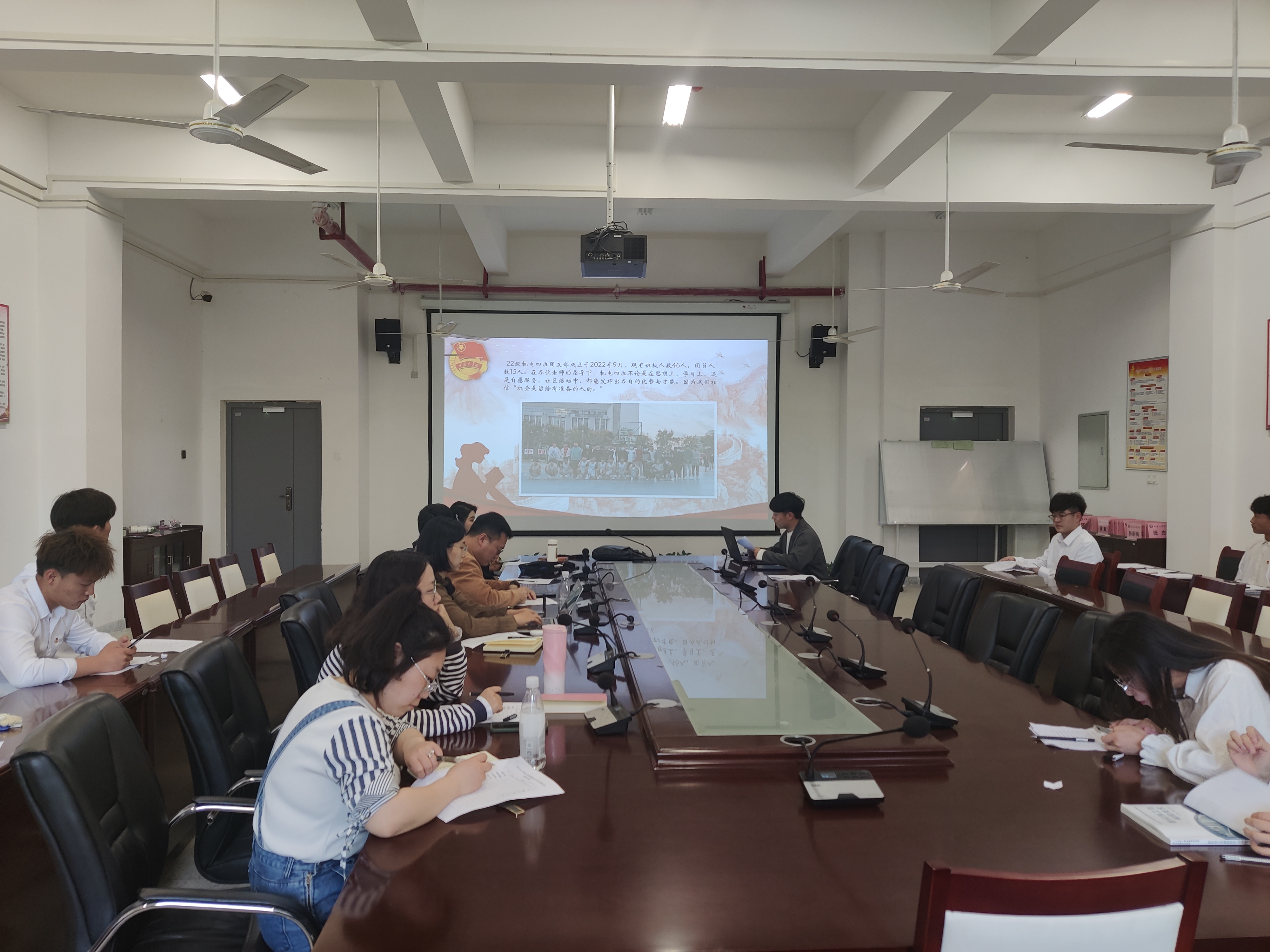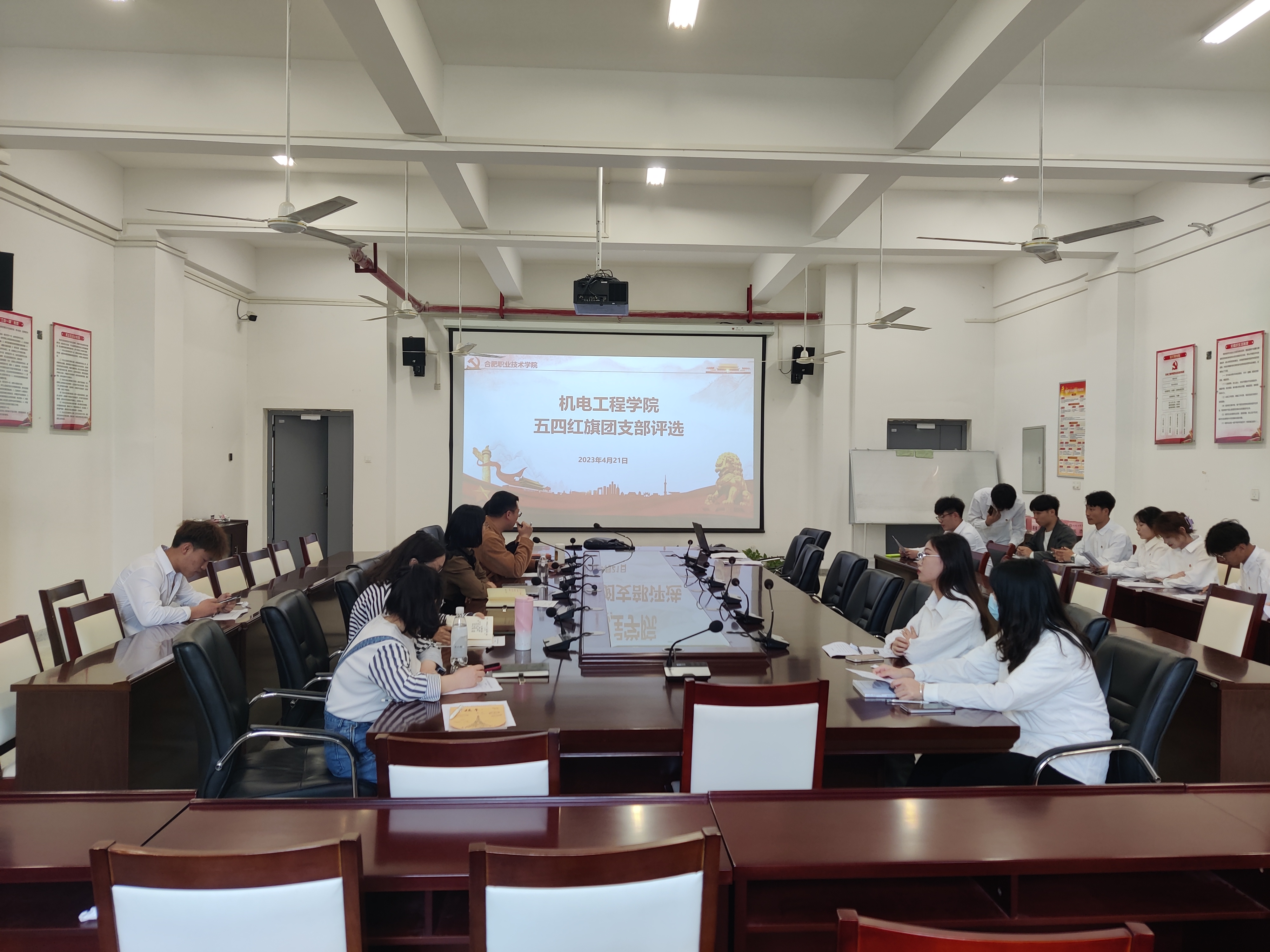 为全面推进团的基层组织建设、活跃基层团组织工作,充分发挥先进典型示范作用,进一步加强青年员工思想政治引领,4月21日下午,2022年度“五四红旗团支部”评比活动于机电楼二楼召开。