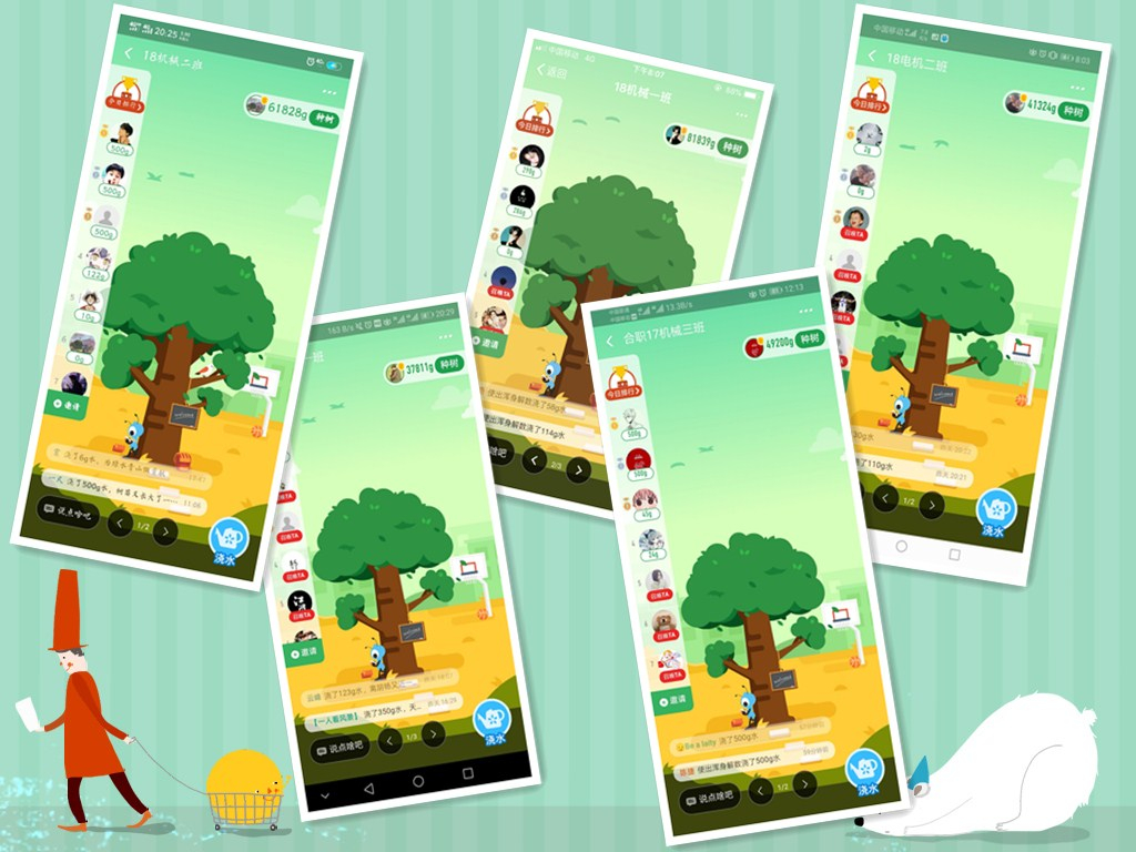 蚂蚁种树活动以班级为单位,集全班能力合种一棵树,最后通过合种的重量来统计名次。活动一开始,各班级同学就踊跃参与,每天都不间断地浇水,没有停歇。最终18机械1班、18机械2班、17机械3班、18电机2班、18模具1班分别以合力浇水的重量:81839克、61828克、49200克、41324克、37811克荣获比赛前五名。