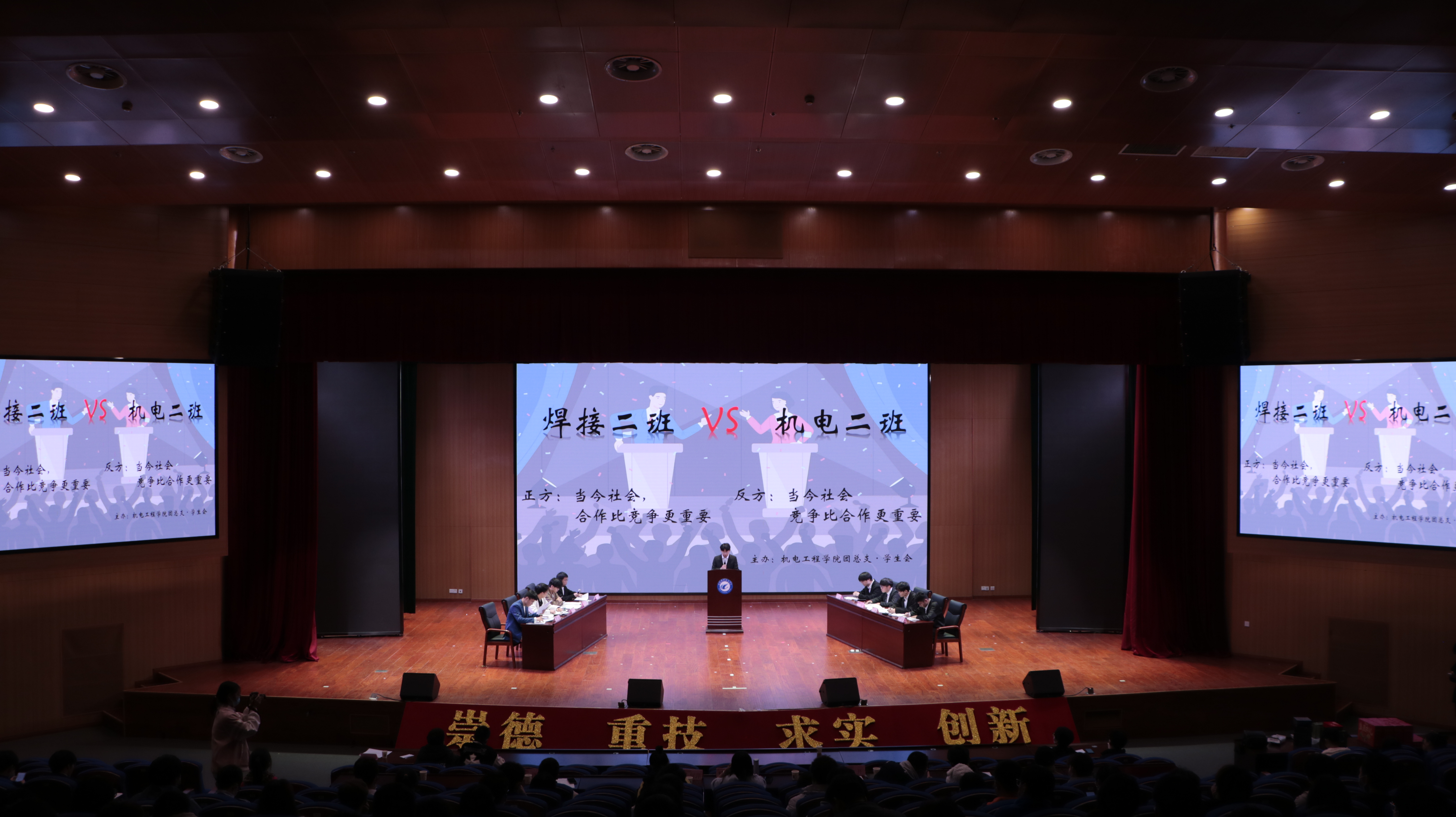 赛事经过前几轮剑拔弩张的初赛和复赛,最终站在舞台上的是22机电2班、22机电3班、22模具2班和22焊接2班的的辩手们。决赛共有五个环节,分别是:主席致辞、开篇陈词、攻辩、攻辩小结、自由辩论、总结陈词。各班根据抽签顺序依次上场,进行最后的角逐。
