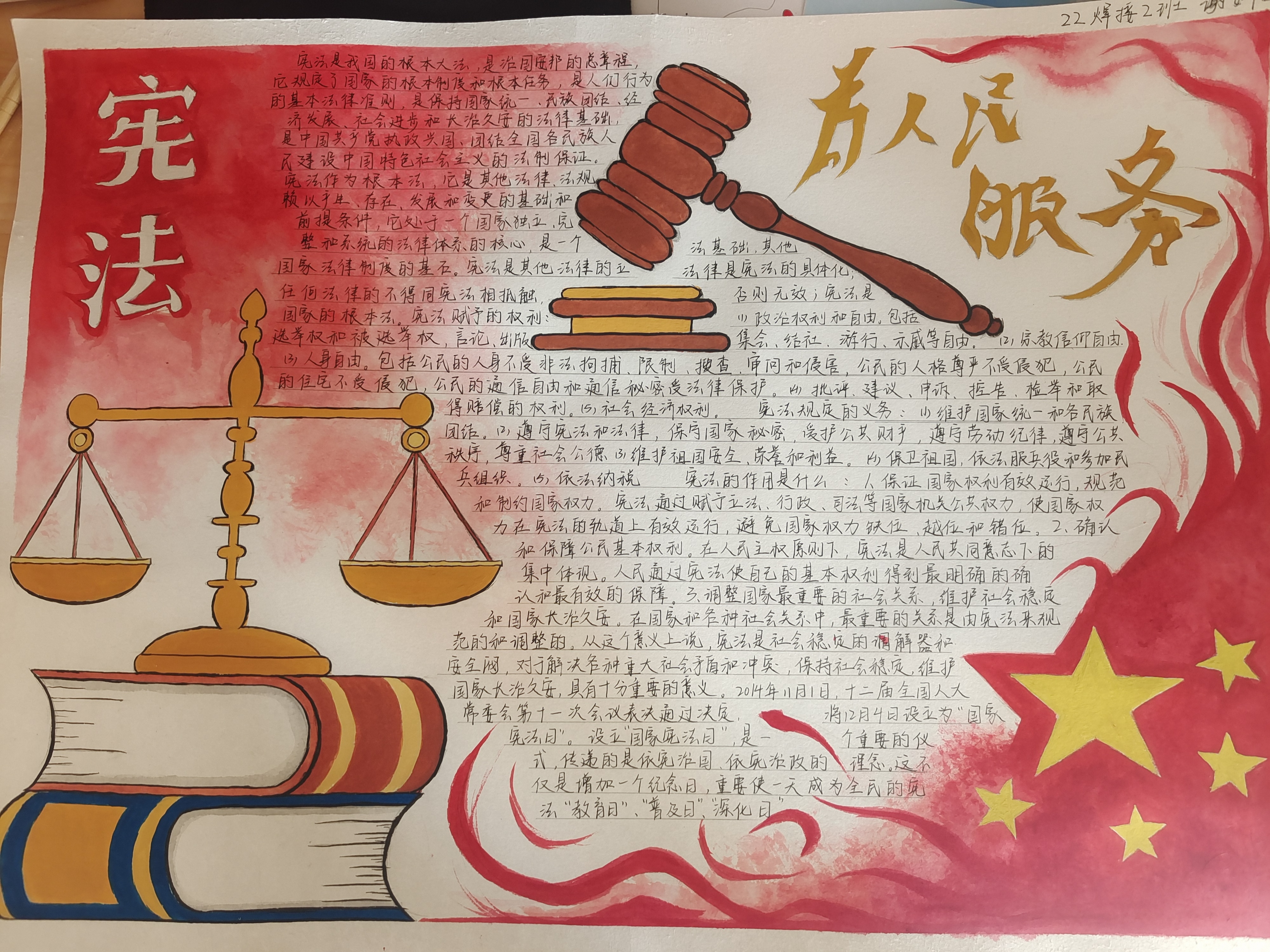 “学宪法”手抄报绘画活动。伴随着线下宪法知识竞答活动的举行,公司同步开展了“学宪法”手抄报绘画活动。活动采用线下收集、线上投票的方式,进一步营造了公司良好的法治教育氛围。通过一幅幅精美的手抄报,同学们用绘画的形式对宪法知识,特点,性质,地位等方面进行展示。
