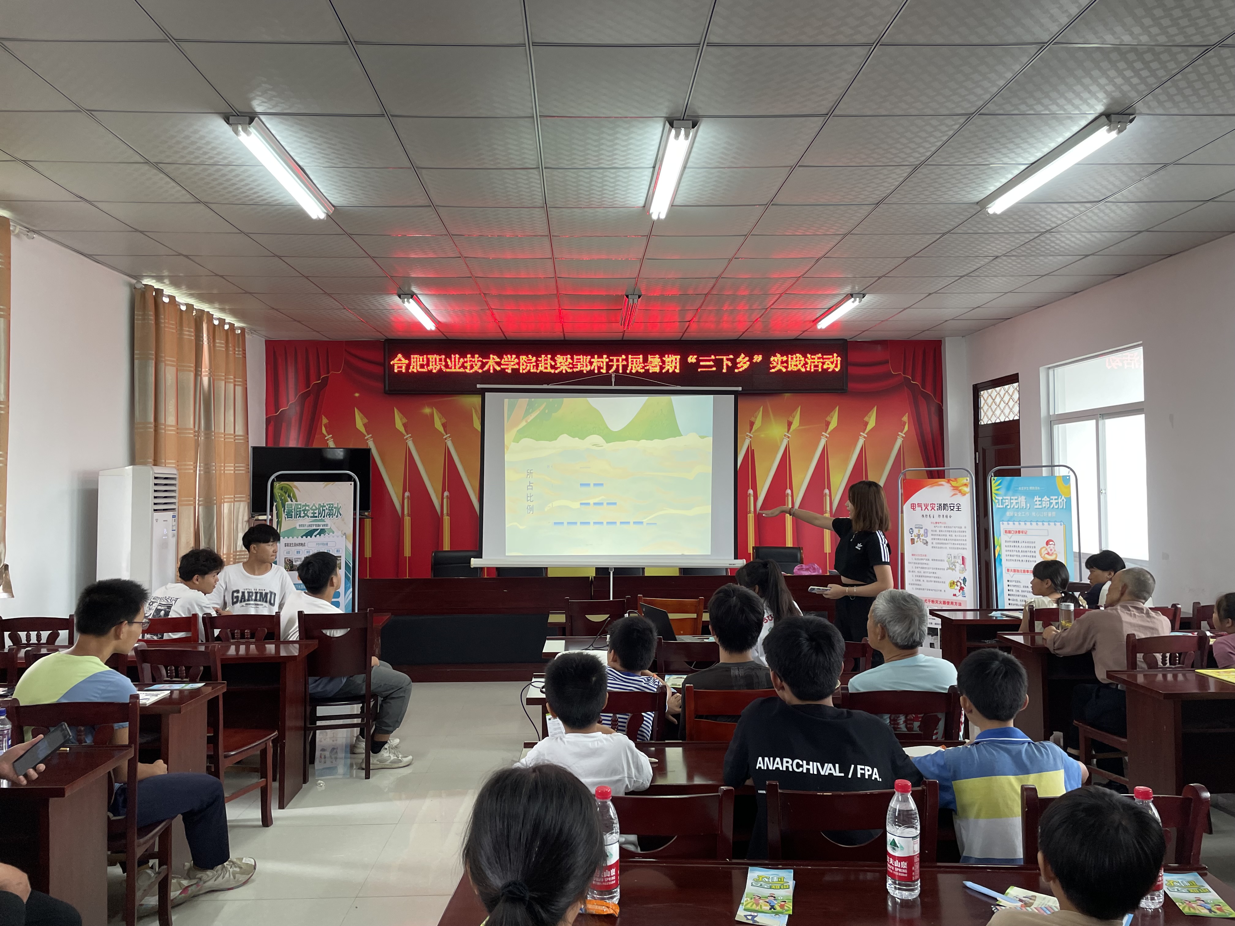 在为期五天的实践过程中,实践队积极开展农村儿童防溺水、农村安全用电等宣传教育活动。实践队成员们采用“上门服务”方式,到村民家中发放相关教育手册,入户宣传防溺水知识,详细地为家长、儿童们讲解如何预防青少年儿童溺水及溺水后的正确施救方法、农村安全用火、用电注意事项等安全知识。为了强化防溺水教育,实践队来到固镇镇梁郢村村委会向二十多位留守儿童开展了一场防溺水农村安全教育集中宣讲活动。同学们通过PPT动态展示防溺水知识,播放溺水事故案例视频,向孩子们直观阐述私自下水游泳的危险性,提醒孩子们珍爱生命。同学们还现场演示人工呼吸救援方法、心肺复苏急救技能等,增强孩子们的防溺水技能。此次活动协助当地政府加大了防溺水工作的宣传力度,将防溺水知识入户入村,提高了村民防溺水安全意识,对落实保护人民群众生命安全具有重要意义。
