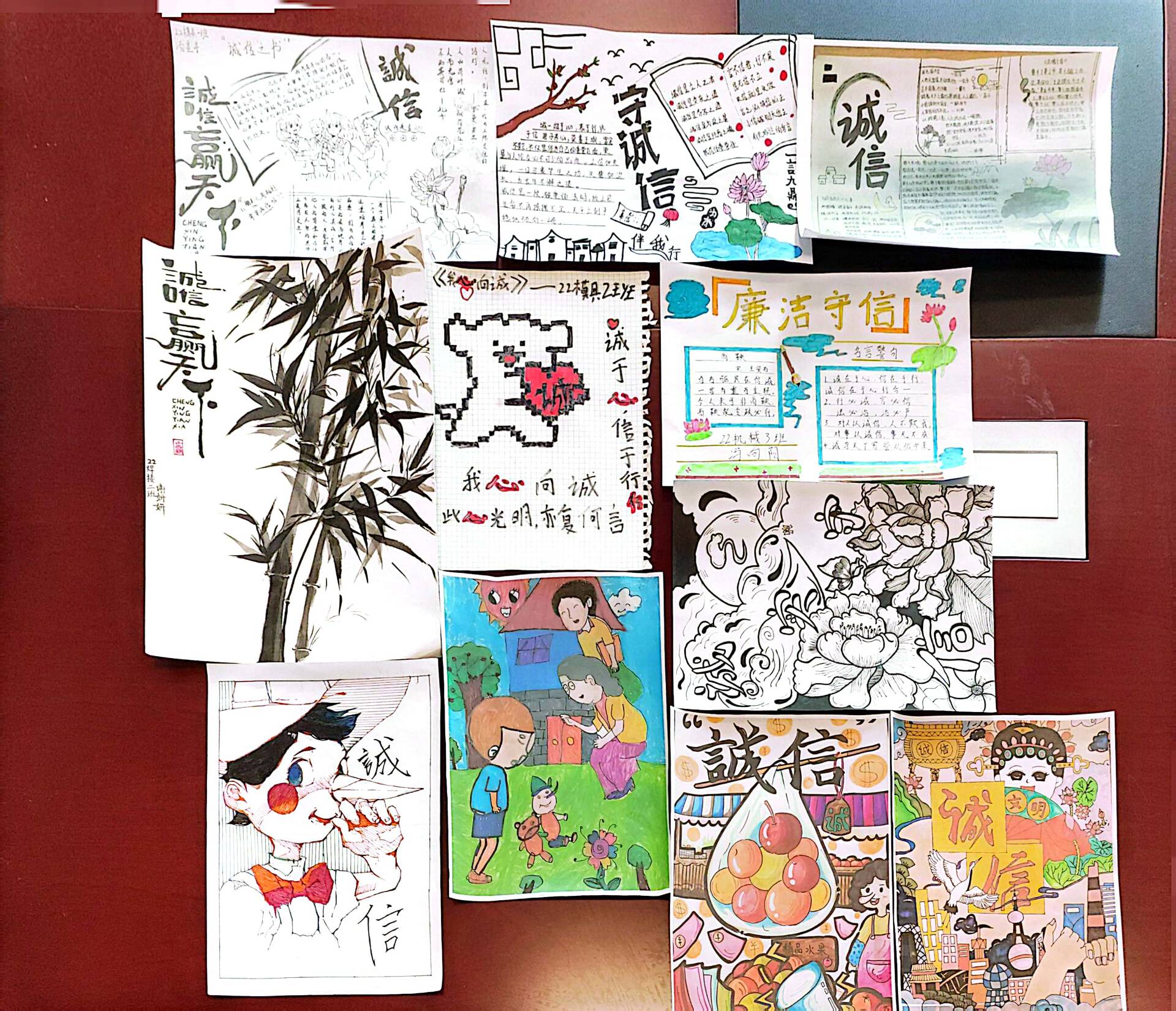 诚信教育主题月期间,学院围绕“诚实守信,防诈骗”主题征集作品。活动启动后,同学们踊跃参与,参赛员工积极制作相关的绘画、海报等原创作品,一共评出11幅优秀作品在公司宣传栏供大家欣赏。