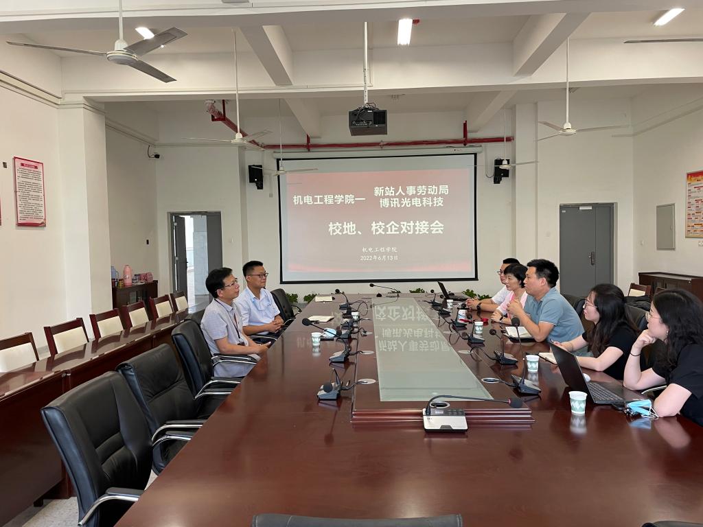 为进一步加强校企合作,深化产教融合,6月13日下午新站区人事劳动局携博讯光电(合肥)股份有限公司一行来访韦德1946体育官方入口,公司党委委员、办公室主任王海,机电工程公司党总支书记王克勇,经理胡木林和相关教师参加了此次对接会。